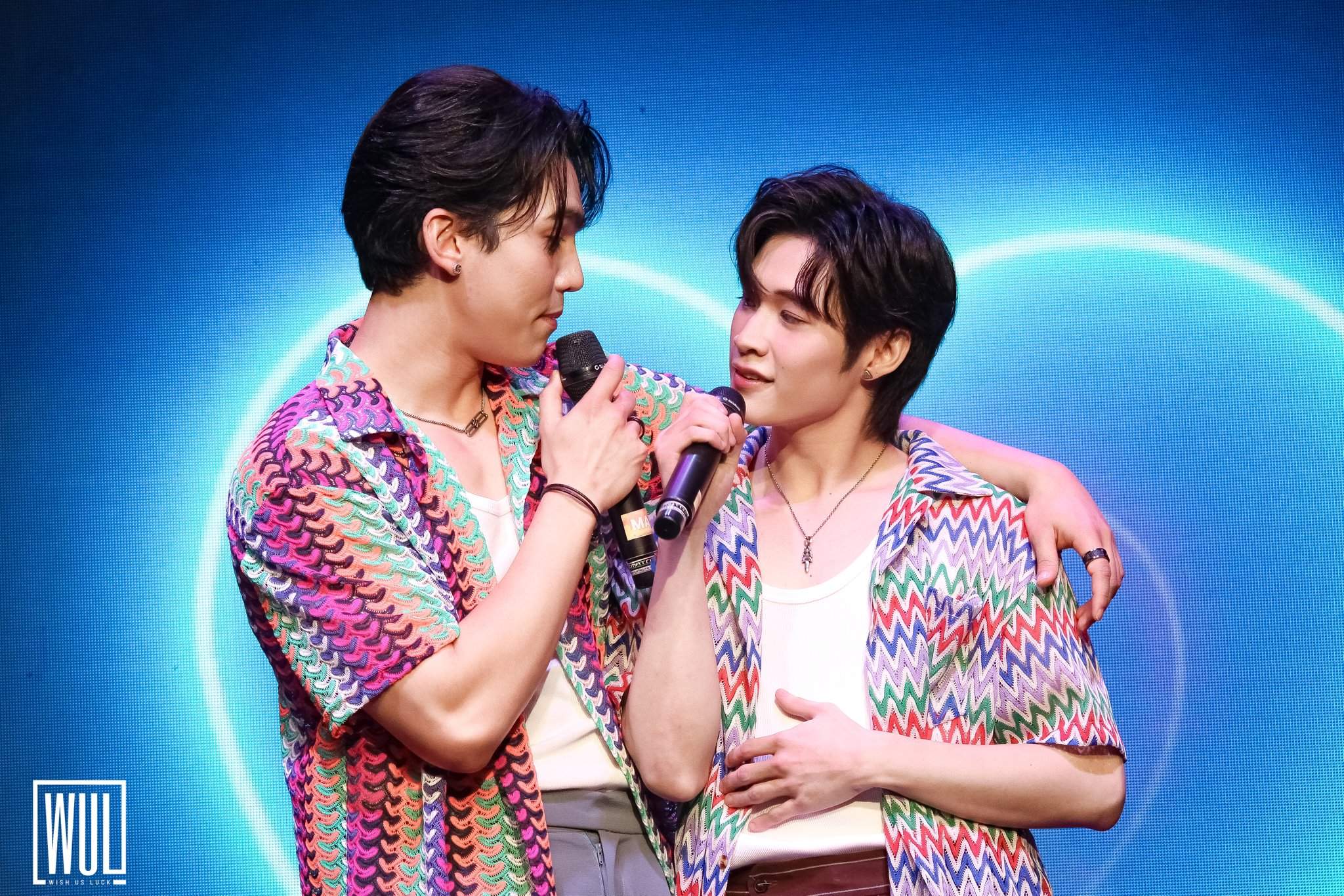 The cast of Two Worlds—Max, Nat, Gun, Pak, and Mon—brought joy to their fans at a special fanmeeting on September 14, 2024, at Teatrino Promenade. Wish Us Luck presented this heartwarming event.