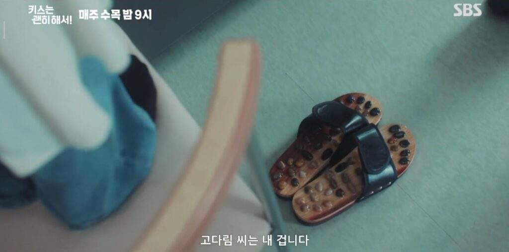 Darim promises to repay Jihyeok in monthly installments. He agrees to this scheme, and doesn’t ask her to pay interest. However, like a child who only knows how to express his complicated feelings through teasing, Jihyeok holds the debt over Darim’s head to get her to do annoying things “for the health of his organs.” He makes her eat healthy food, wear painful pressure sandals, and take the stairs.