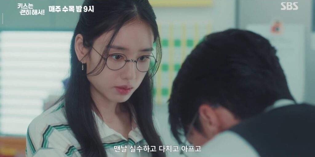 Jihyeok continues acting nonchalantly. The next time he helps her, he coldly says she’s bothering other people by messing up all the time, pointedly showing her that he’s not “being nice” anymore.
