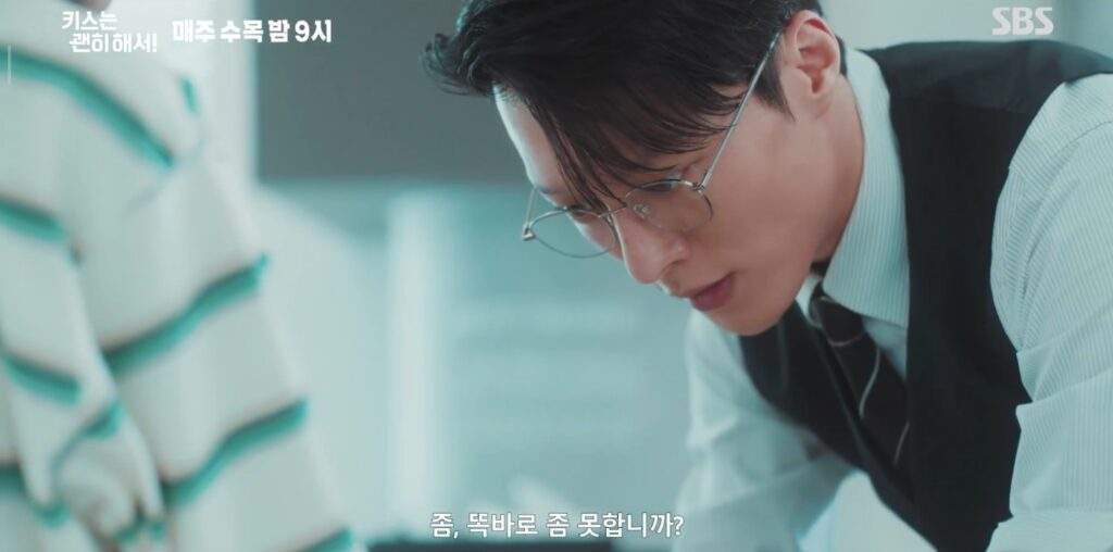 The engagement is made public, and Darim thinks that this was the reason why Jihyeok reacted so dispassionately when she visited him. She psyches herself up to act “like a pro” around him, which means she wears glasses and talks in an overly formal subway announcer voice.