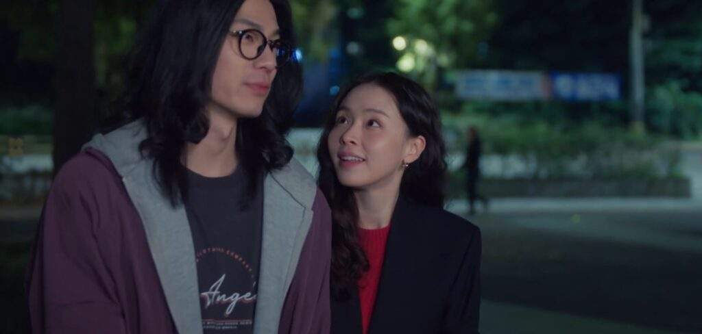 Meanwhile, frustrated by Hong Young Seok’s silence, Kim Ji Hye fakes an accident—saying someone was following her and she sprained her ankle—to catch his attention and make him worry. Thus, Young Seok hurries to her, accompanies her to the bus stop, and eventually takes a taxi to ensure she gets home safely.