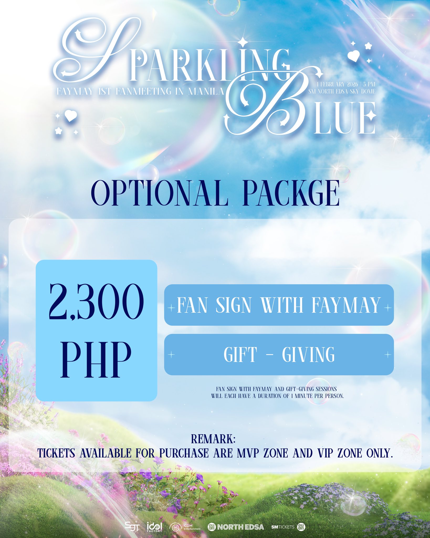 Bleachers ticket holders receive an official poster, a random 10 for the exclusive flashcard, and a hi-bye session. In addition, they will also receive a 1 of 5 photocards, a random 10 for a 15-minute soundcheck, and a 2:10 group photo. These perks give fans a memorable way to connect with FayMay up close.